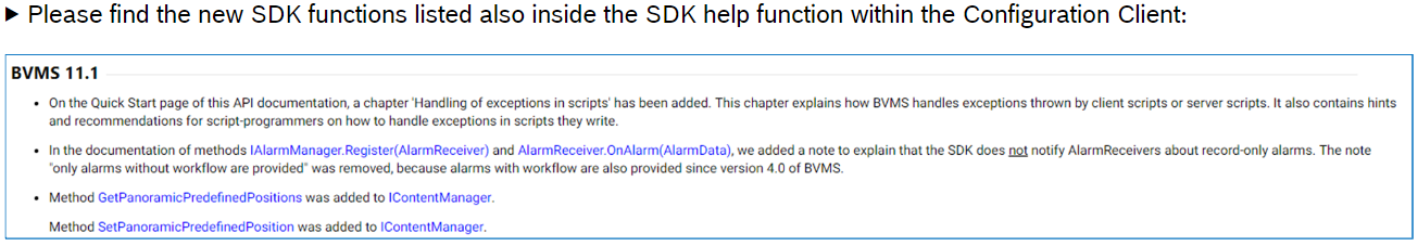 Prior to BVMS 11.1.1 this function was already possible outside SDK, by using the standard alarm configuration.