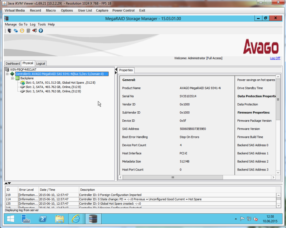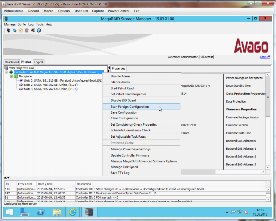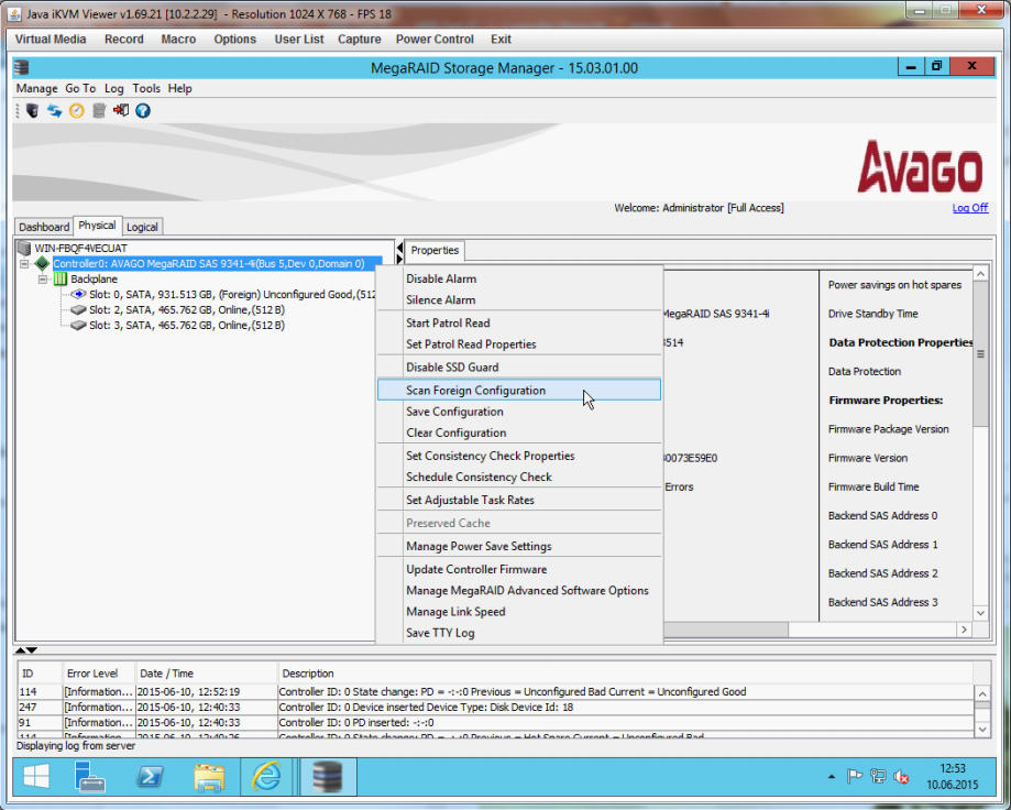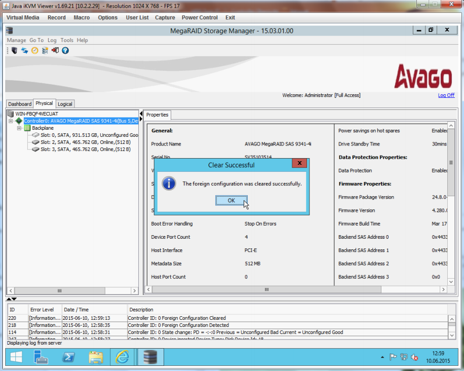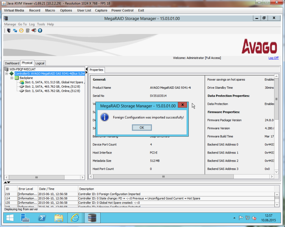Configuration at MegaRAID Storage Manager (MSM)