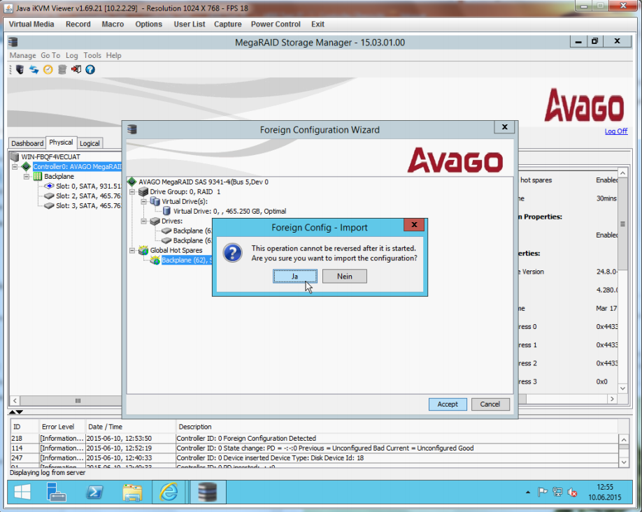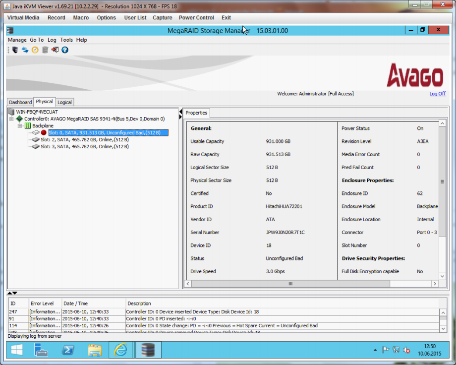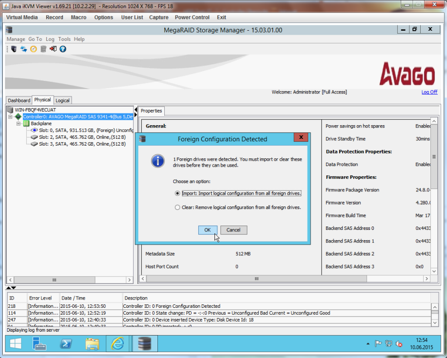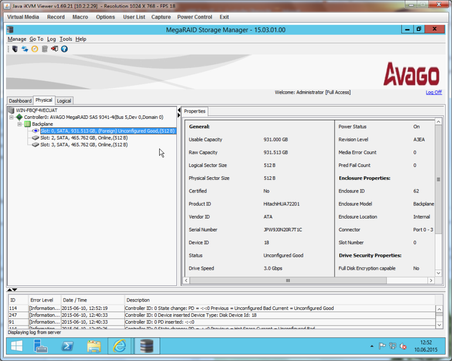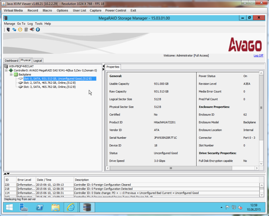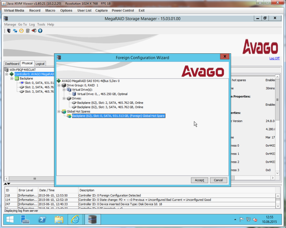 Configuration at MegaRAID Storage Manager (MSM)