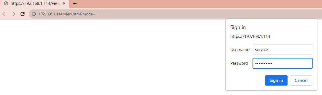 2. Login with the camera's credentials
