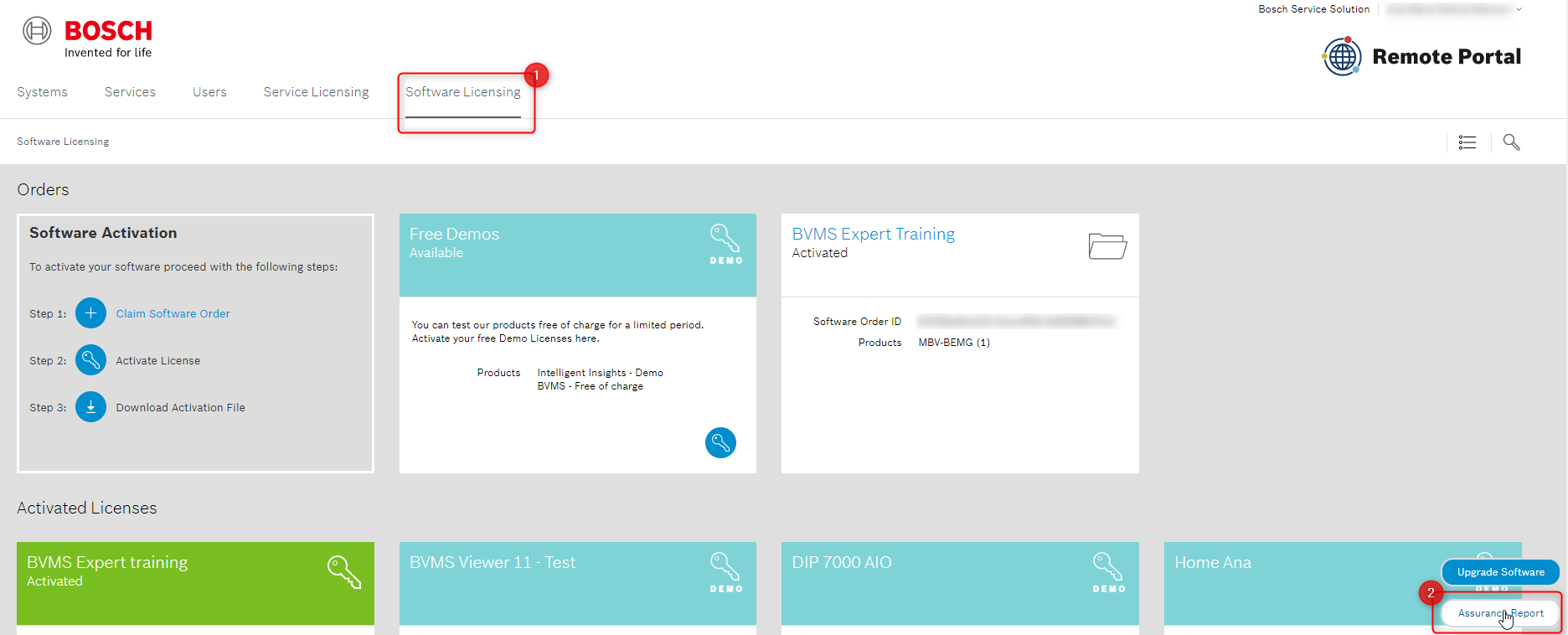 - Go to the Software Licensing tab and click on the 3 dots button and select Assurance Report