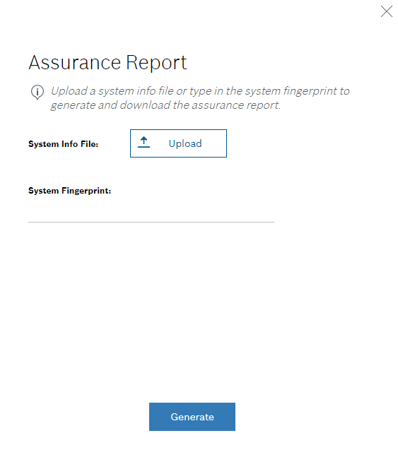 - Upload the system info file or type in the system fingerprint to generate and download the SMA report