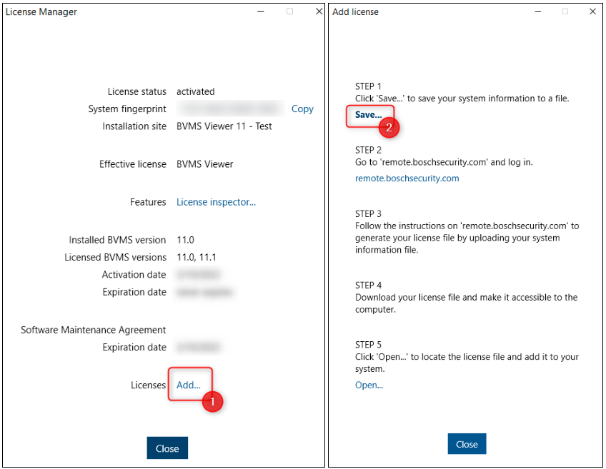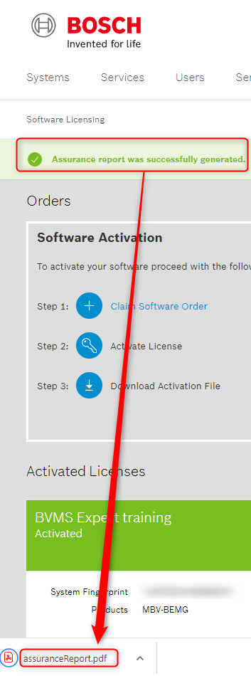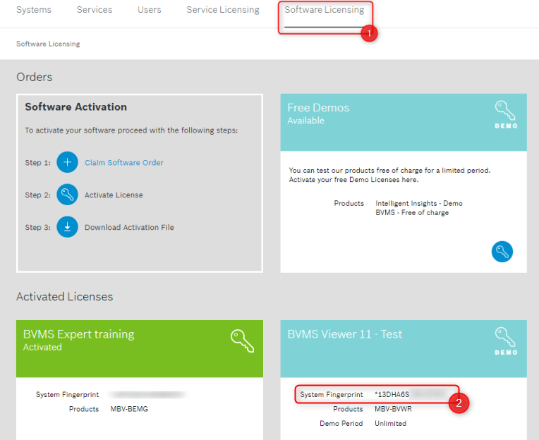 You can find the System Fingerprint either by accessing your Bosch Remote Portal account or from BVMS Configuration Client.