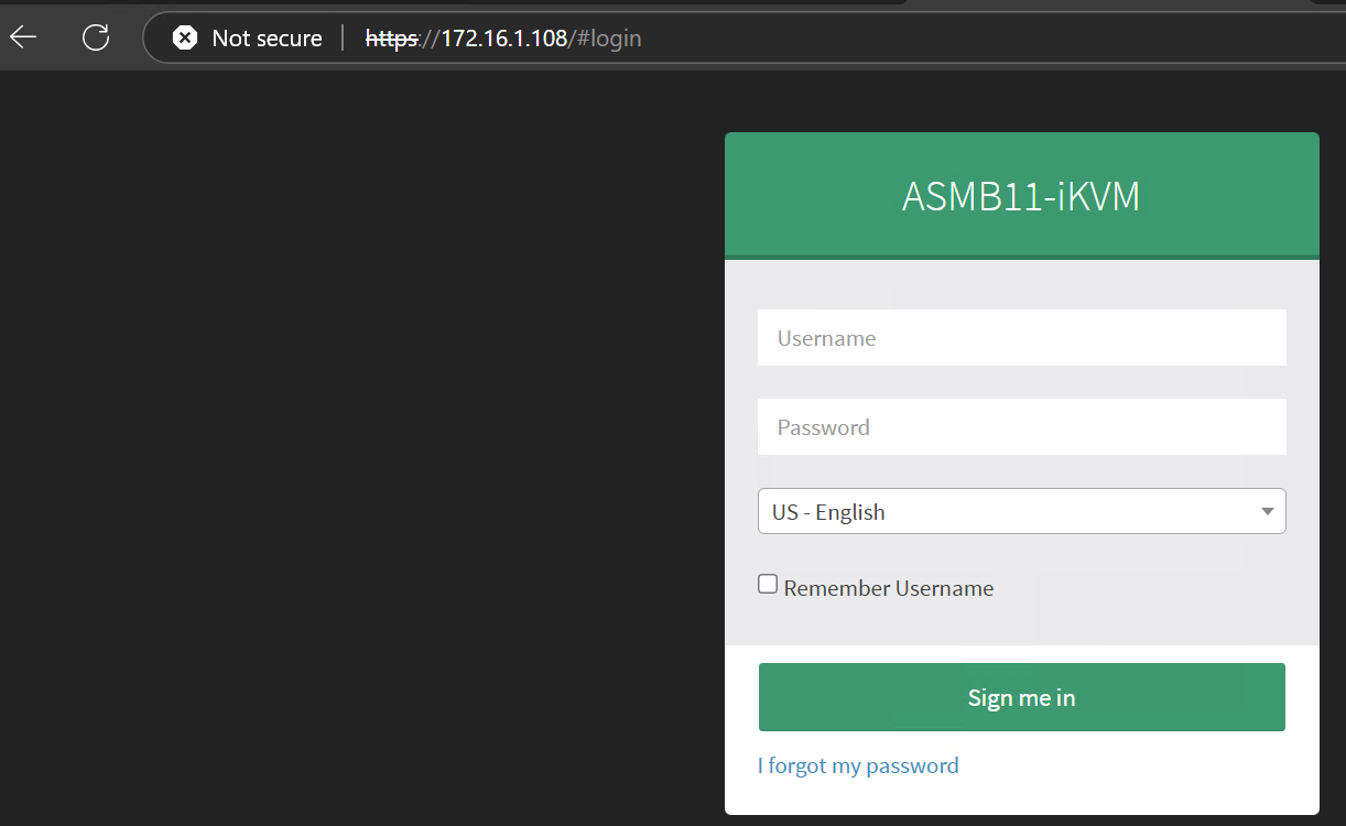 Using a web browser, enter the IP address of the BMC interface, along with the username and the password.