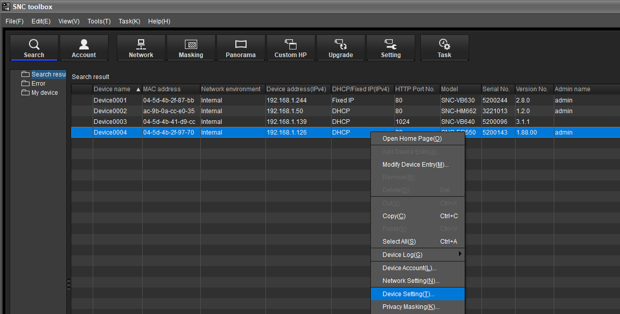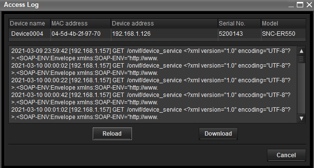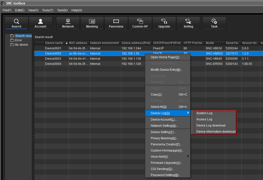 After the authentication, right click on the camera for which you need the Logs > select "Device Log(G) option > Download all the logs that are there