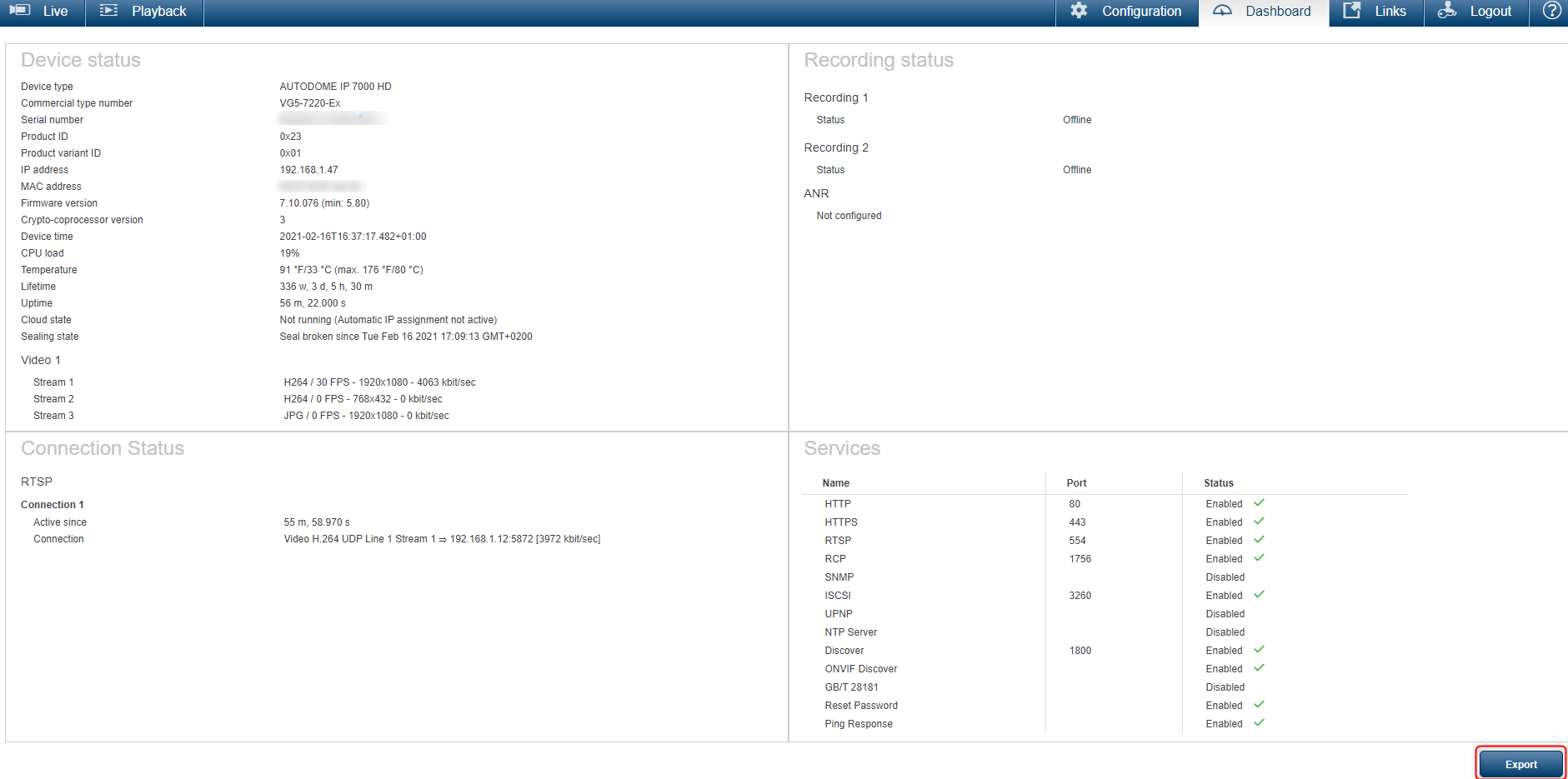 At some point, the Central Support Team may ask you to provide the logs of your Bosch IP camera and or Encoder