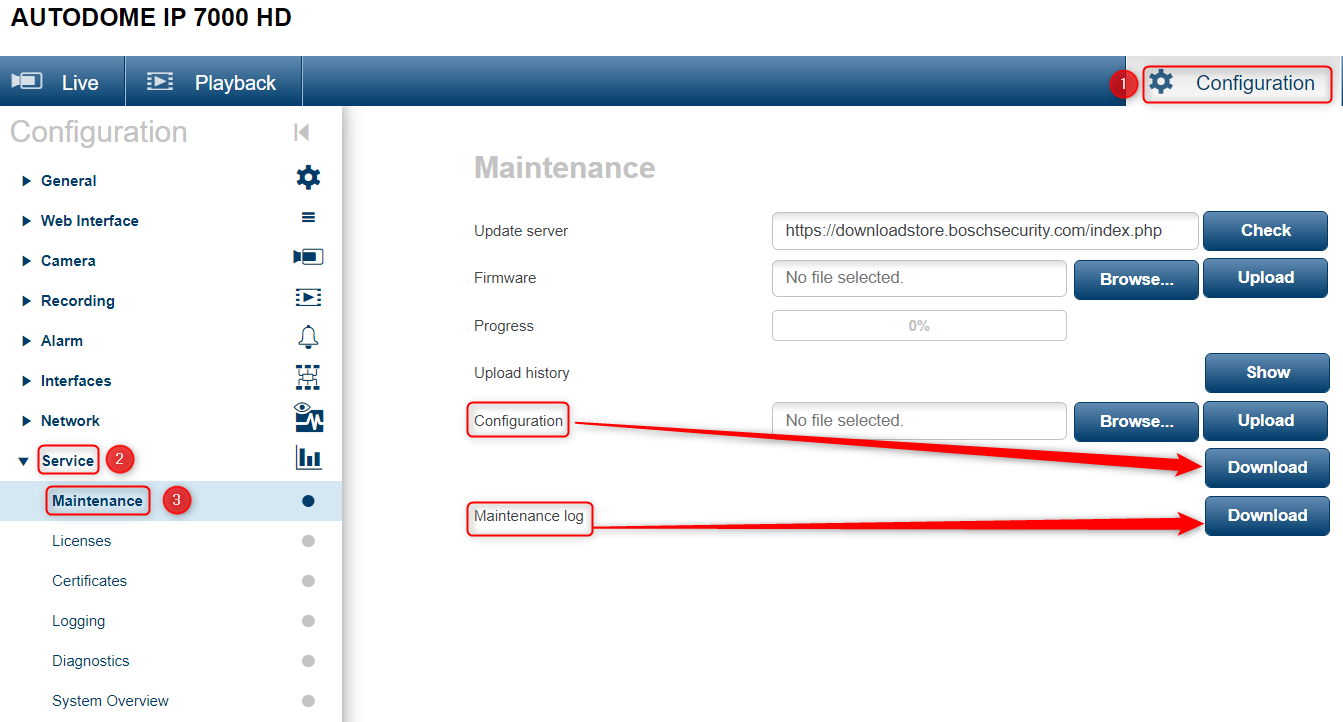 Click both buttons named "Download". The Config file and the Maintenance Logs will be downloaded.