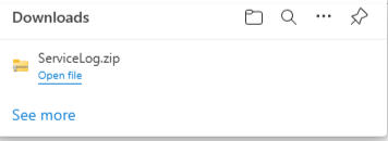 - If the link and credentials are correct you should get a dialog box that will notify you the logs are downloaded and by clicking the "Open file" you will be redirected to the ServiceLog file location.