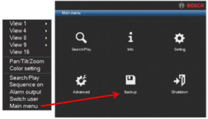- Right click on the Main Menu > select Export ( or Backup – for AN models)