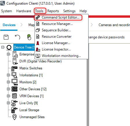 How to configure (copy-paste) an example scriplet in BVMS Configuration Client?