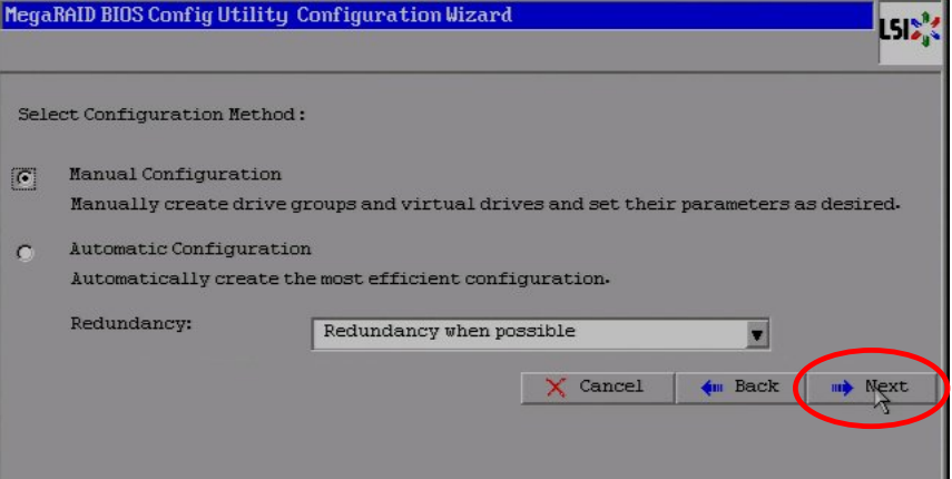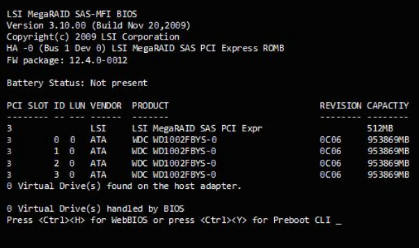 • Press “Ctrl + h” throughout the boot process to access the LSI BIOS interface