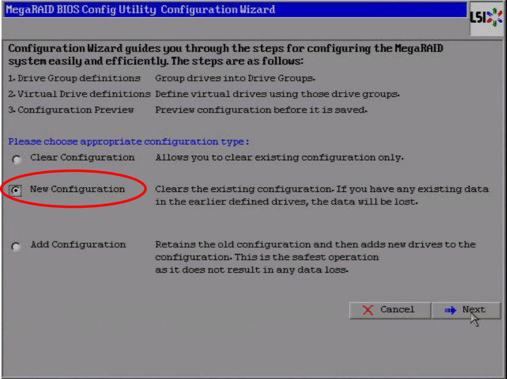 3) From the “Configuration Wizard” page ensure “New Configuration” is selected and the select “Next”.