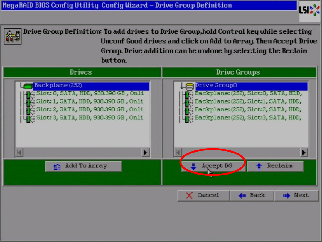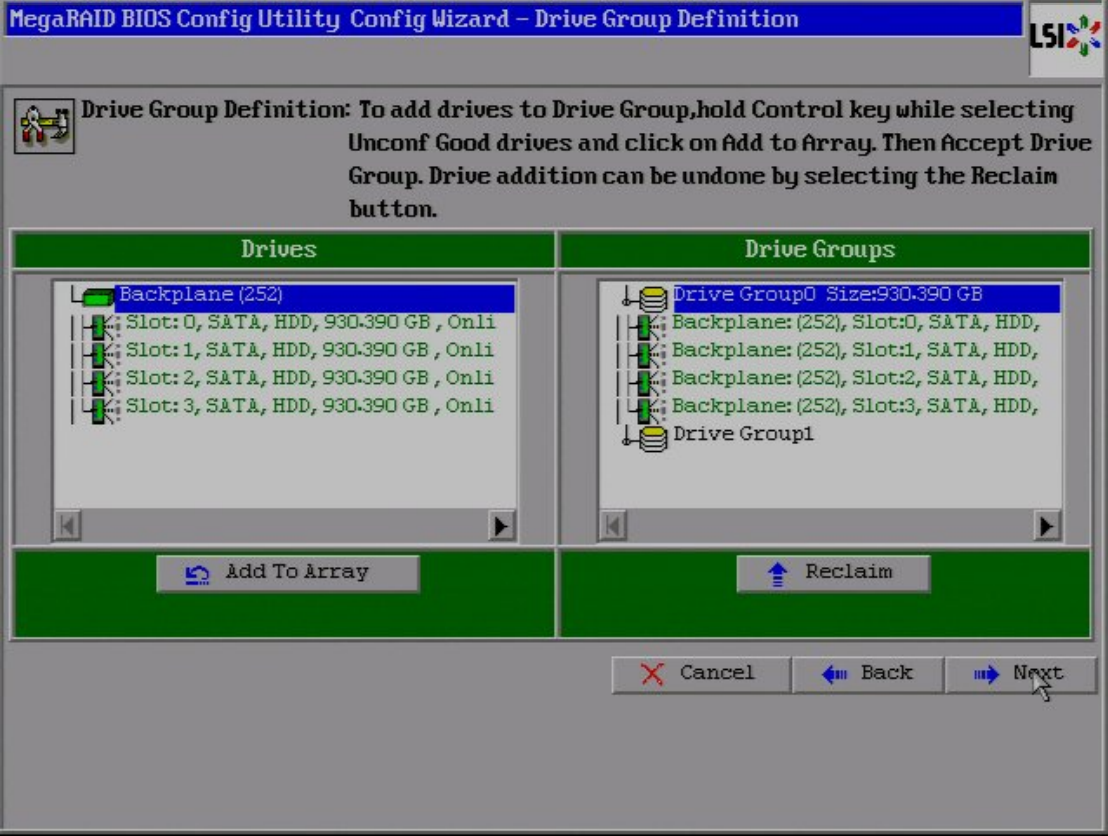 7) After accepting the disk group you should see “Drive Group1” below “Drive Group0”.