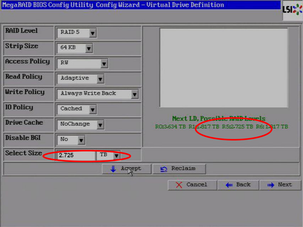 • Select Size: Enter the amount shown for the R5 option. Shown here 2.725 TB
