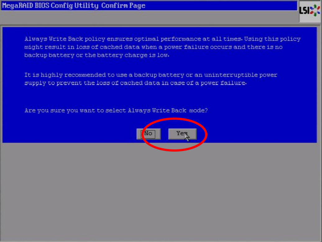 10) After selecting “Accept” you will be asked “Are you sure you want to select Always Write Back mode?”.