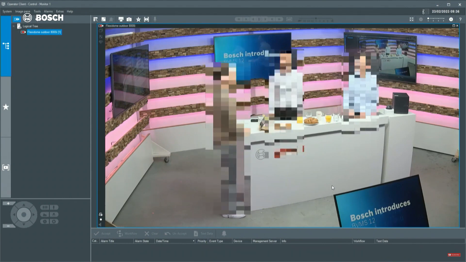 - This feature can be configured to blur objects of type Person, based on a powerful Bosch Artificial Intelligence (AI) function: