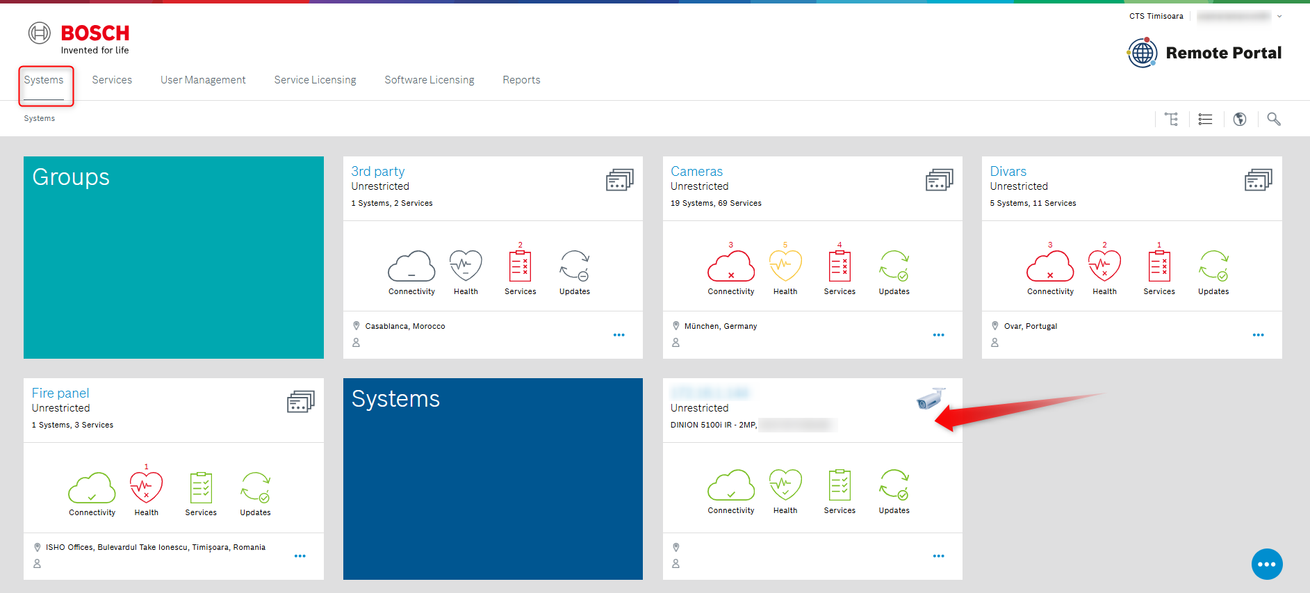 Select “Systems” tab. Your camera will be displayed here: