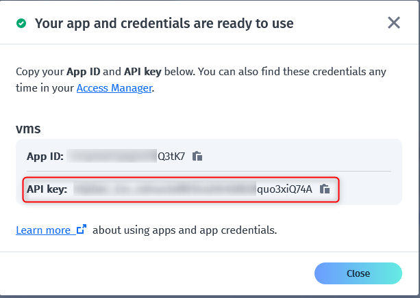 Please be careful not to confuse the API key with the App ID that must be introduced within the "Customer specific API key" field in Configuration Client.