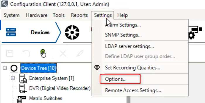 - Click Settings and select Options from the drop-down list.