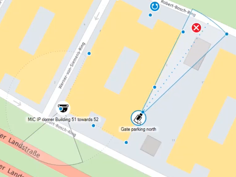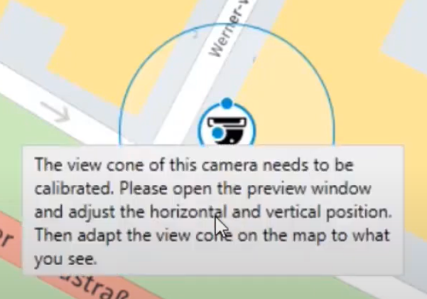 - Adjust the view cone on the map. The view cone should correspond to the direction the camera is looking (shown in the preview window).