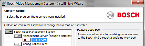 - The SSH Service must be installed and running. If deploying a BVMS Pro system, insure the SSH Service is part of the installation process.