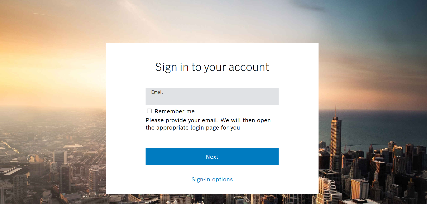 or - select Sign in button and you will be redirected to the web page where credentials must be filled in > click Next:
