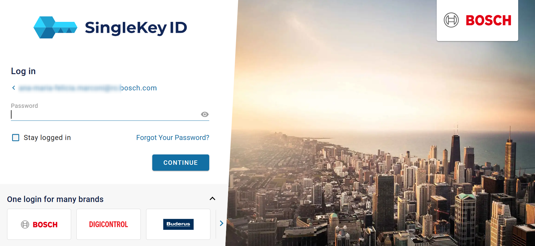 Fill in the password set when you configured the SingleKey ID account > click Continue:
