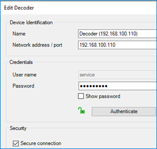 2. Right click on the decoder "Edit": Enable the secure connection (https) on the decoder