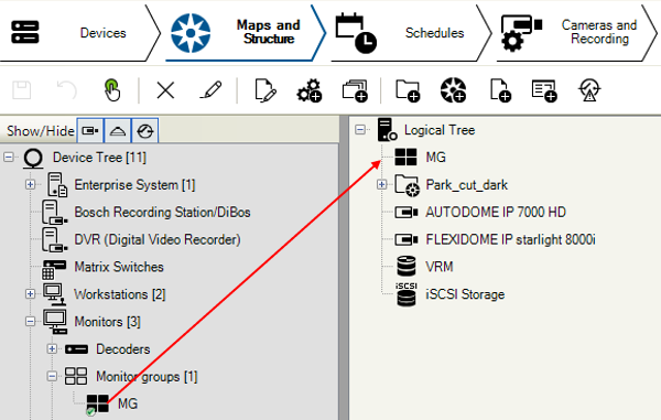 Note: If the MG is not enabled (user group permissions) then the user can put the MG on the image pane in Operator Client, but cannot access it.
