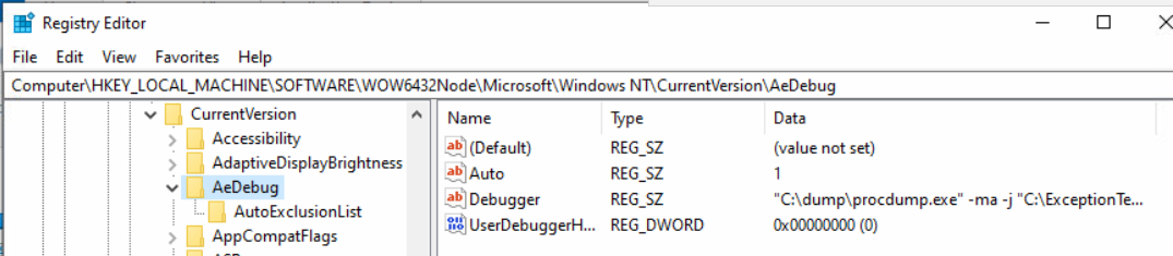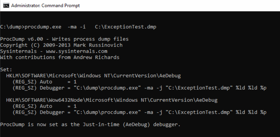 To register procdump as just-in-time debugger, follow these steps: