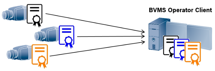 Self-signed certificates are easier to create, but they are not so secure and that also would mean that each BVMS Operator Client should have each of the self-signed certificate from each camera installed on its Windows Certificate Store. Taking into account that a system can consist of more than 500 cameras and 50 BVMS Operator Clients, the manual setup and maintenance of such a system requires an inacceptable amount of time.