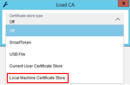 3. In order to use the CA certificate from Domain Certification Authority, choose Local Machine Certificate Store in the drop down menu: