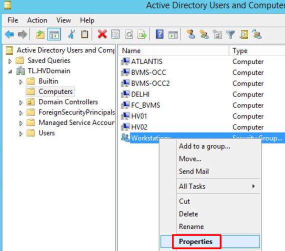 2.1 Create AD computer group for BVMS Operator Client workstations