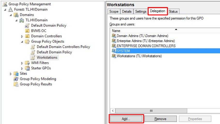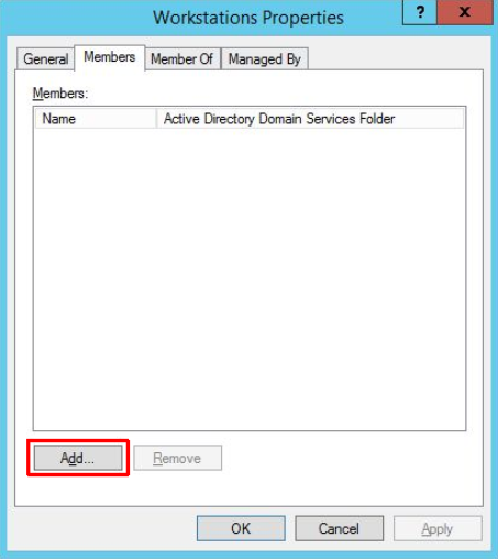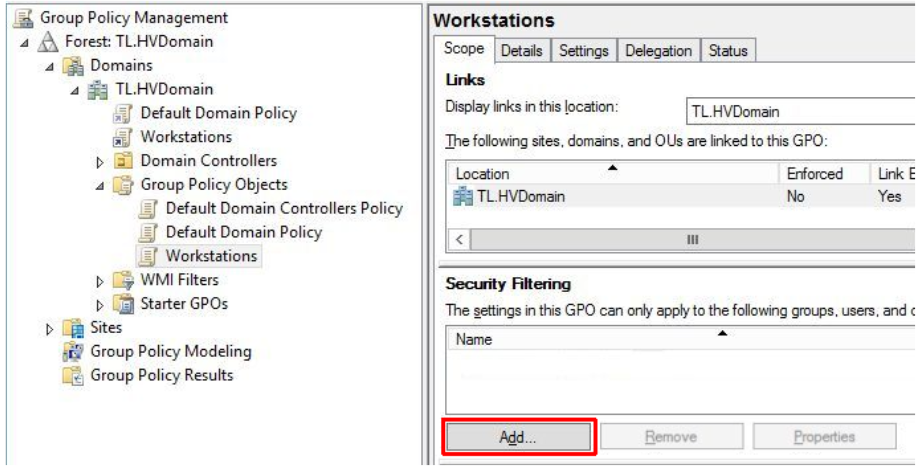 Click Add button and select the workstation computer group created in the chapter 2.1: