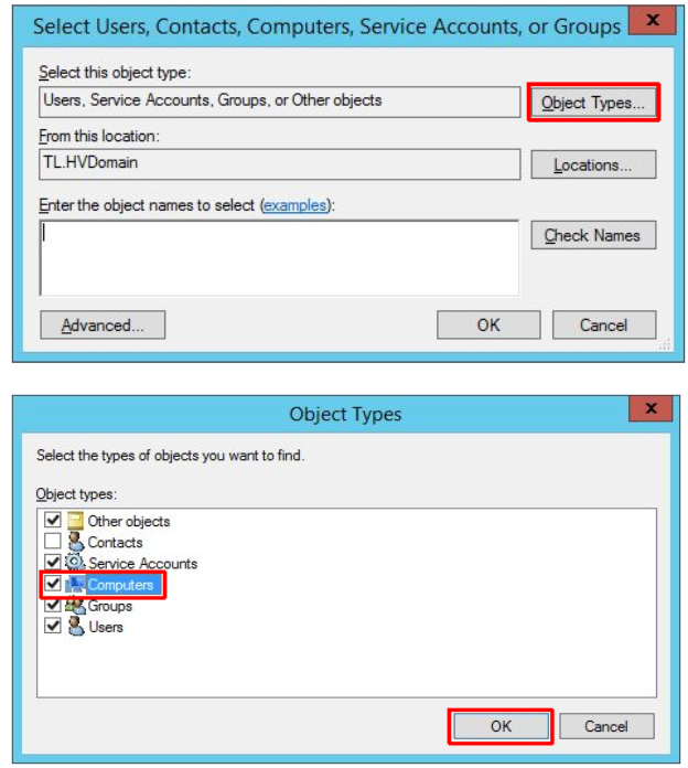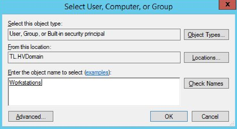 In the next dialog click on the Object Types and check Computers and press OK in order to be able to enter the workstations’ host names.