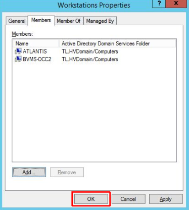 Press Add button in order to add the BVMS Operator Client workstations to the group: