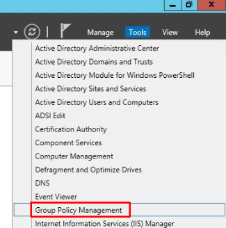 1. In the DC computer open the Server Manager and go to Tools / Group Policy Management: