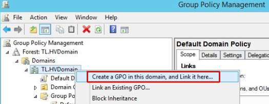 2. Right click the domain and select Create a GPO in this domain, and Link it here: