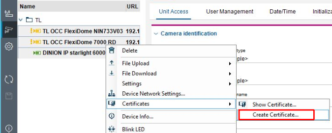 2. Select multiple cameras, right click on them and choose Certificates / Create Certificate: