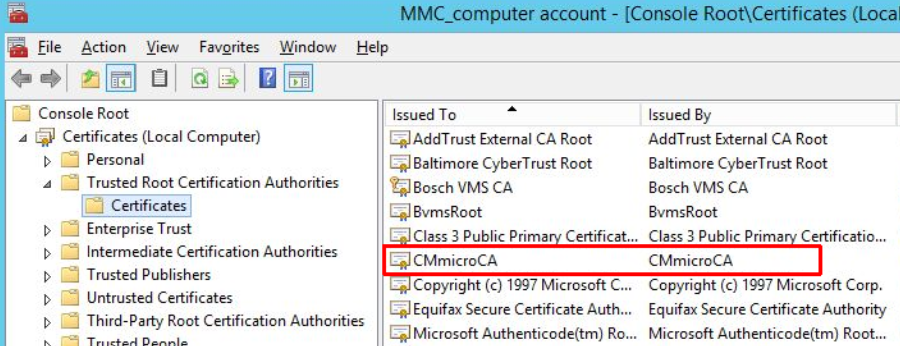 2. CM own MicroCA certificate that is saved on the same computer in the Windows Certificate Store