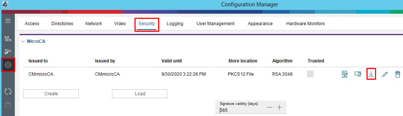 In this solution description camera certificates are created using Configuration Manager (CM). As CA certificate for signing the camera certificates CM can use a certificate from Domain Controller (DC) Windows Certification Authority or create its own MicroCA. Certificates of CM MicroCA can