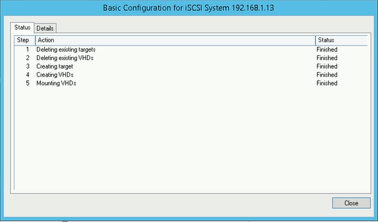 Wait until all the lines are completed with status Finished and click Close