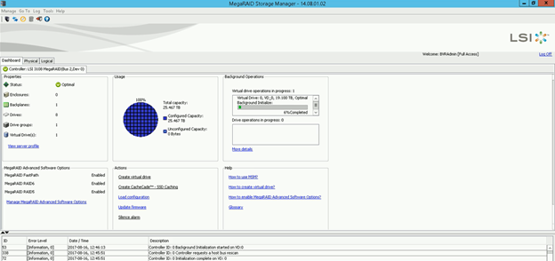 Wait until initialization is done in Mega RAID Storage Manager.