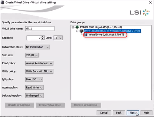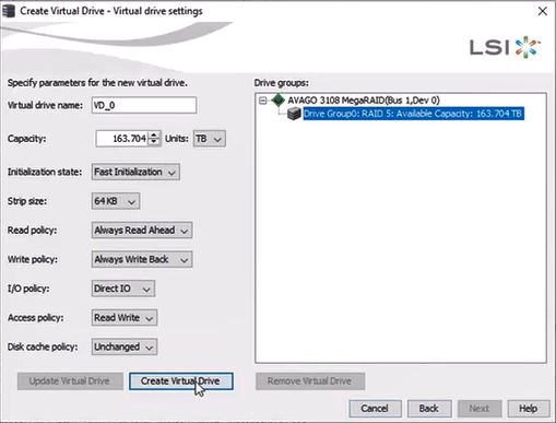 13. Click Create Virtual Drive.