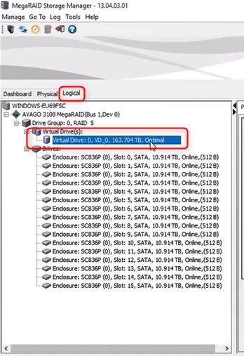 17. Exit the MegaRAID Storage Manager application.