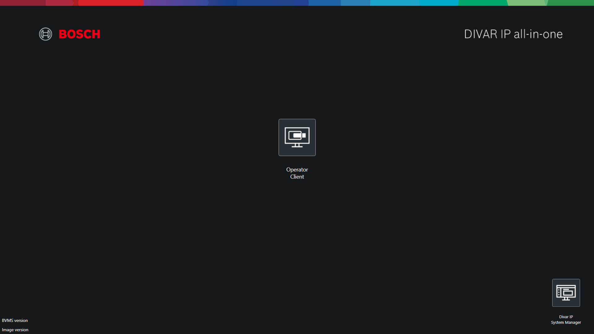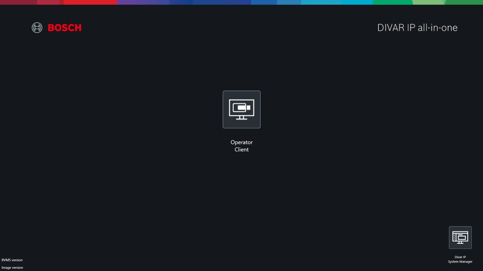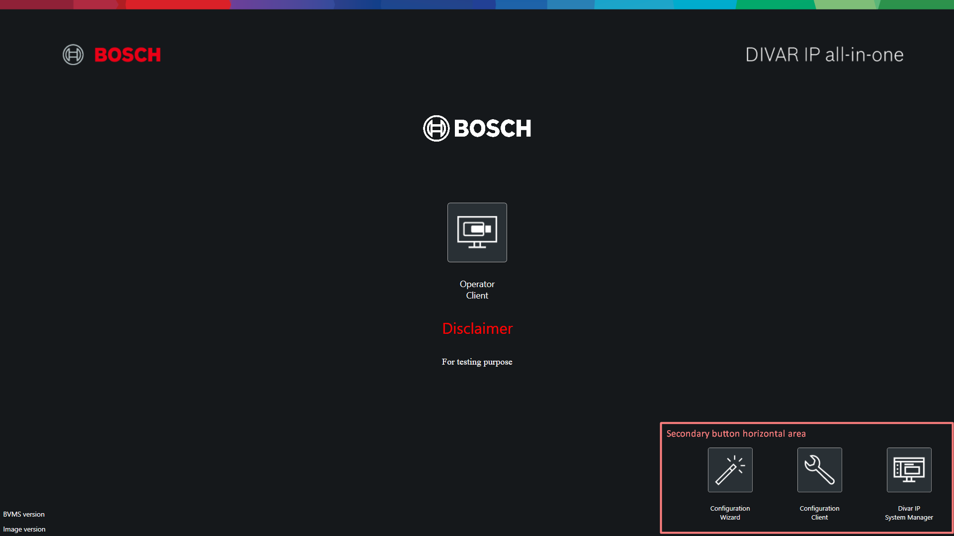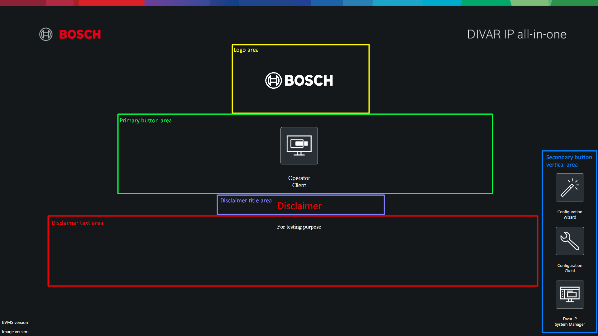 BVMS Desktop screen (BVMS Kiosk screen) has several customization possibilities for introducing a company logo picture and a custom text, as well as selecting if an application icon will appear on the screen or not.
