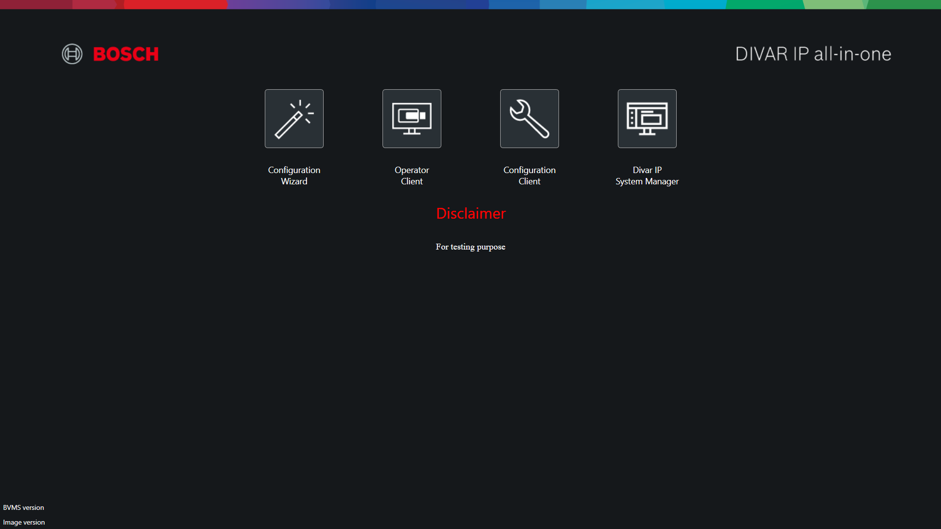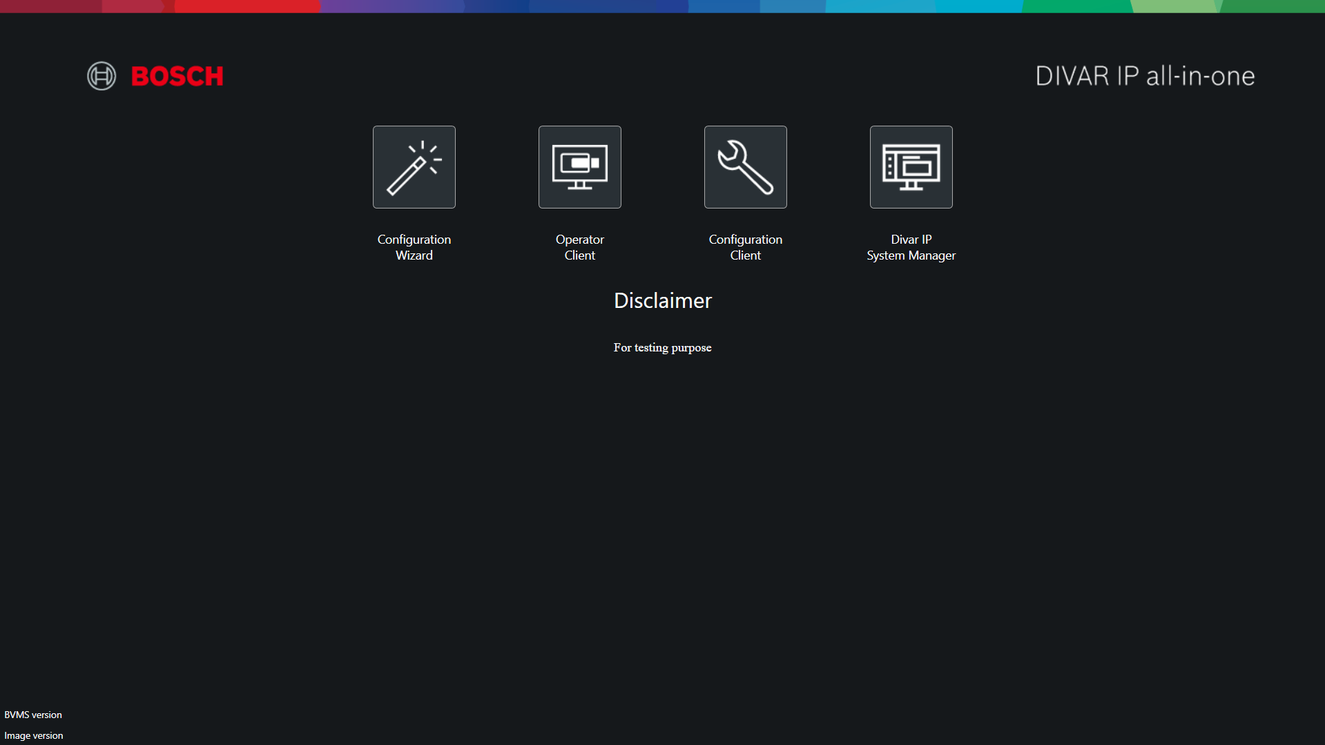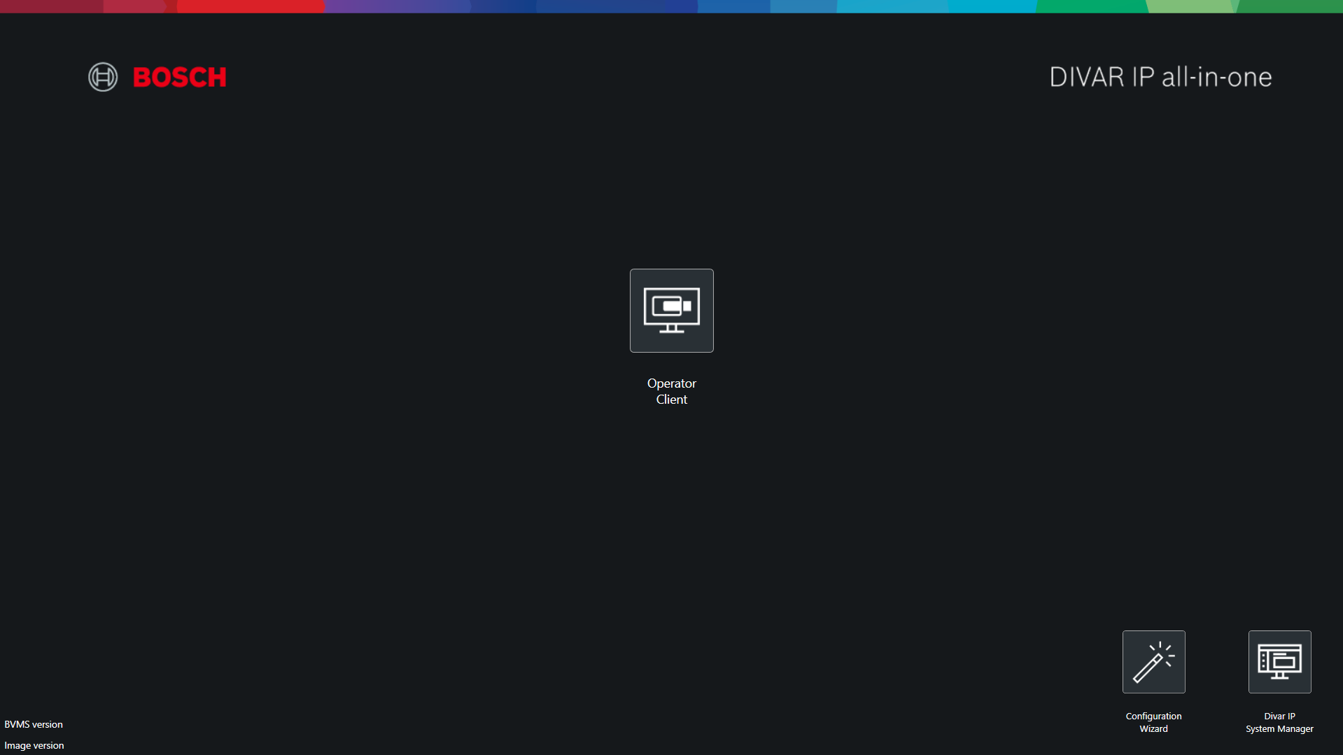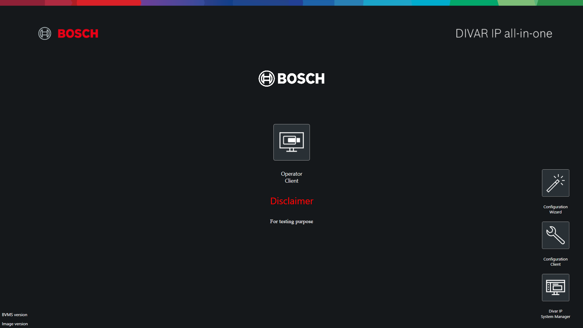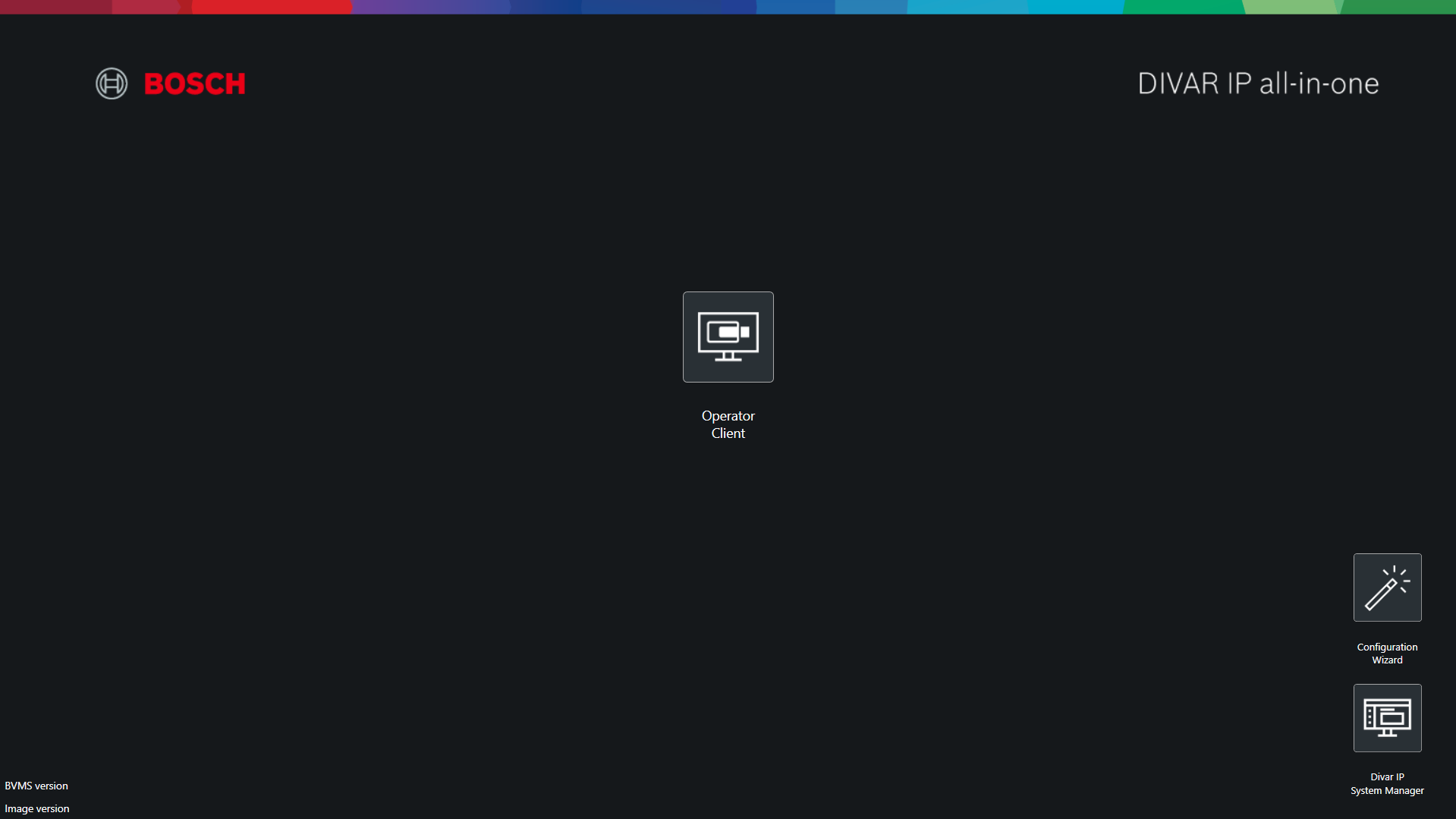 BVMS Desktop screen (BVMS Kiosk screen) has several customization possibilities for introducing a company logo picture and a custom text, as well as selecting if an application icon will appear on the screen or not.