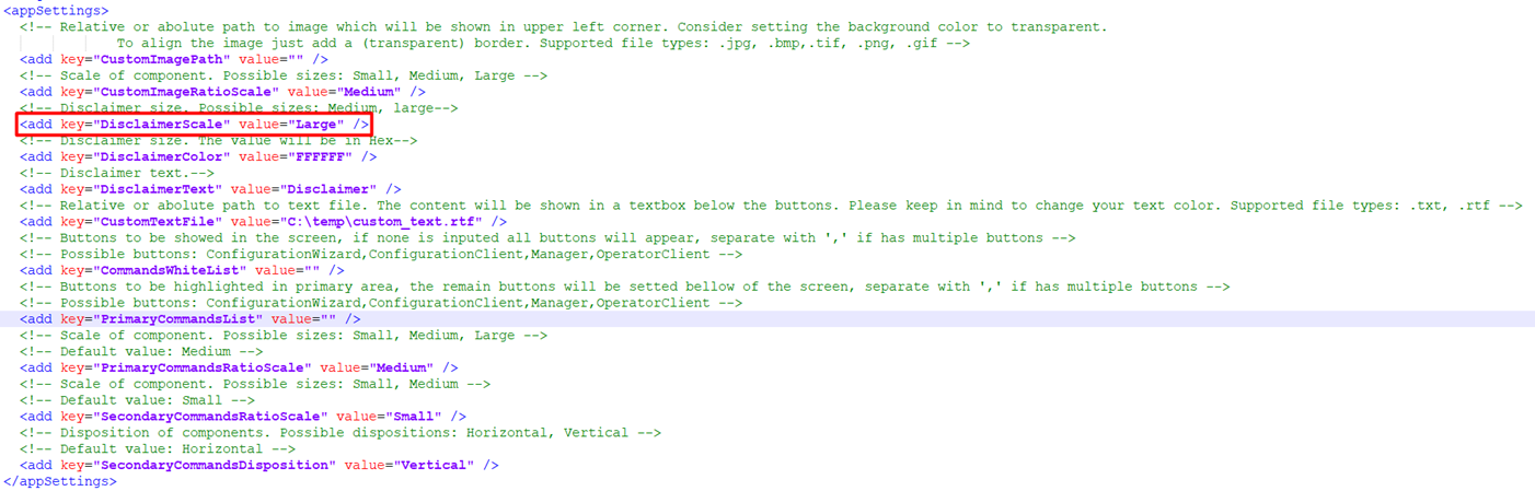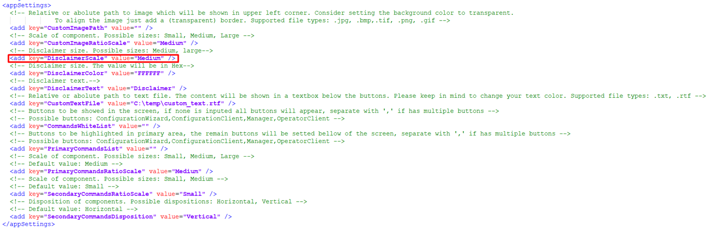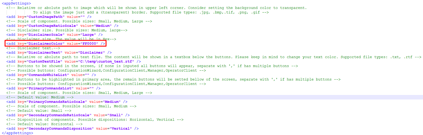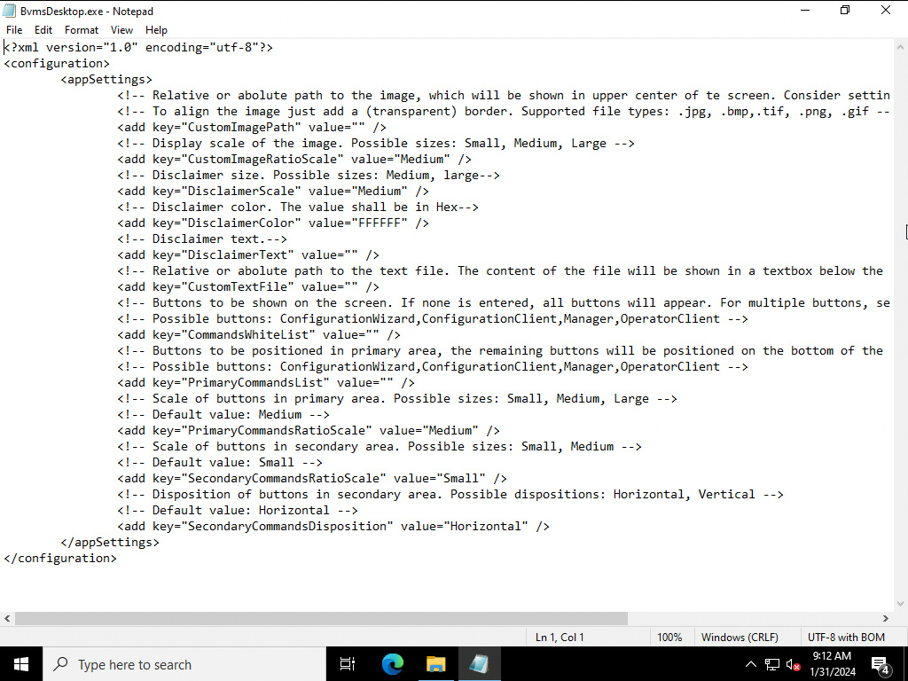 4.3. Change to possible values to apply your customization on BvmsDesktop.exe.config