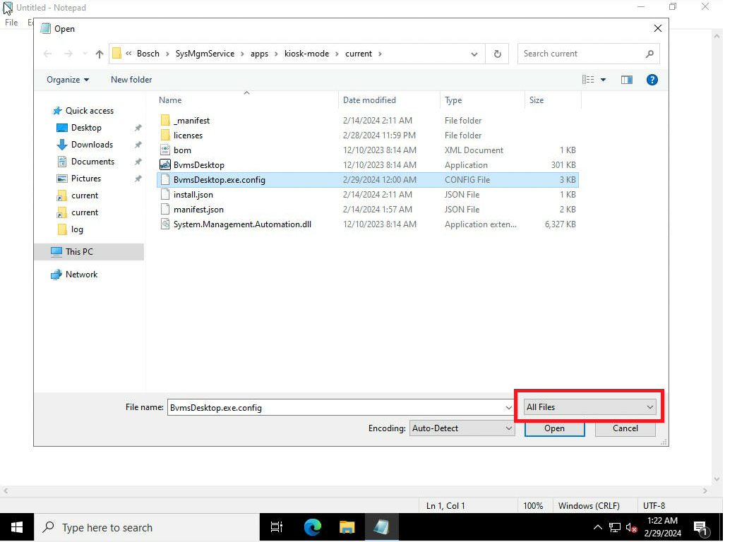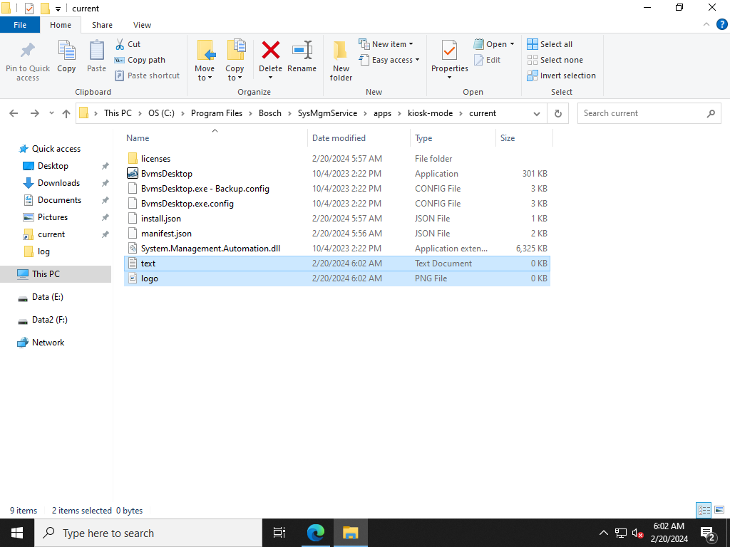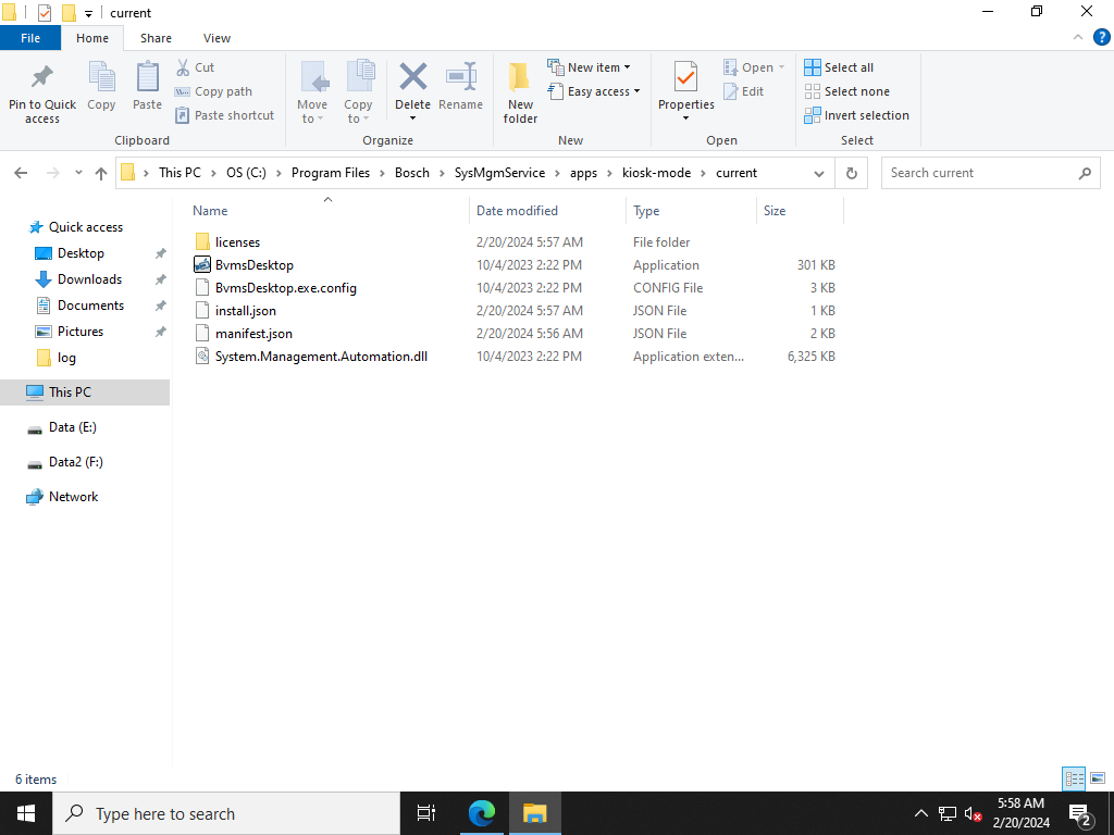 2. Go to C:\Program Files\Bosch\SysMgmService\apps\kiosk-mode\current\