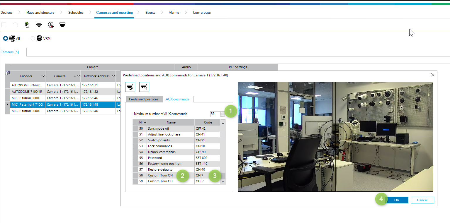 How to define a custom tour for Bosch Cameras and call it with AUX command in BVMS Operator Client?